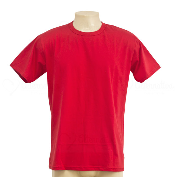 Camiseta vermelha em algodão penteado 30.1 para sublimação. Temos diversas opções de modelos de camisetas disponíveis em nossa loja. Produtos adultos e infantis, em modelos masculinos e femininos. Fabricação própria.