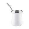 Copo/Cuia térmico de 250 ml, produzido em inox interno e externo , acompanhado de canudo (17,5cm) em inox.