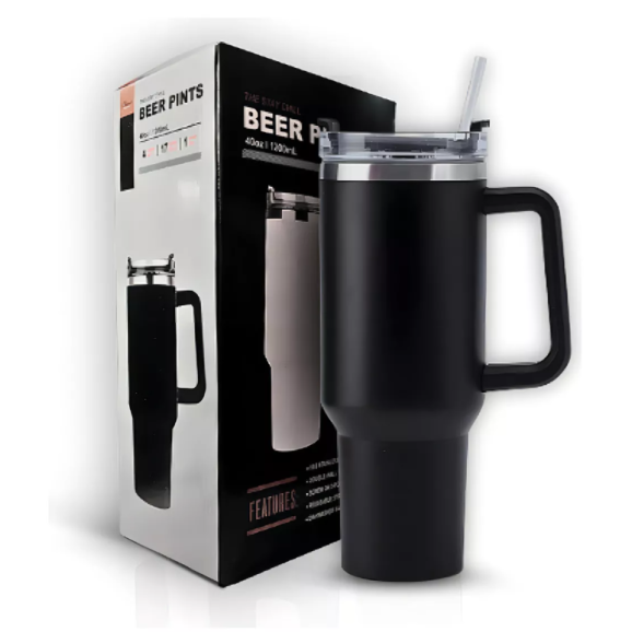 COPO TÉRMICO INOX 1200ML C/ ALÇA E CANUDO PRETO