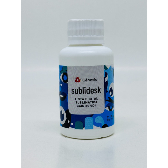 Tinta sublimática Ciano/C Gênesis de alta qualidade. Tinta específica para sublimação em foto produtos. Compatível com impressoras de pequeno formato A4 e A3. Alta fidelidade de cores.